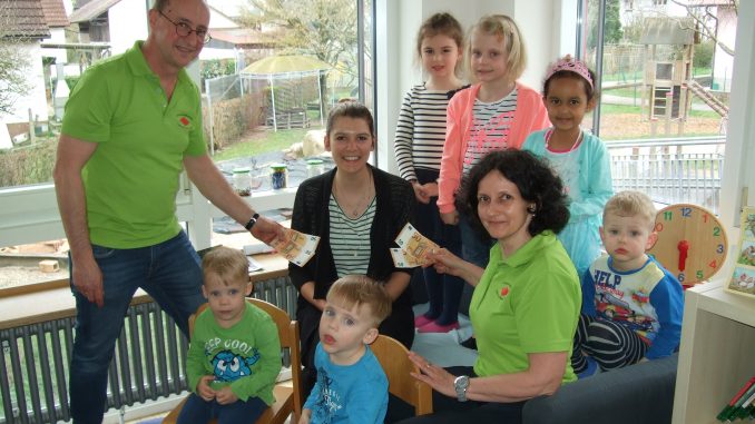 Es hat schon einige Jahre Tradition, dass der Schwarzwaldverein Sasbach zu den Unterstützern der örtlichen Kindergärten zählt. In diesem Jahr war der Kindergarten Waldfeld an der Reihe: die beiden Vorsitzenden Albert Bohnert und Claudia Wilhelm hatten sich beim Kindergarten eingefunden, um einen Teil des Erlöses aus der Teilnahme am Weihnachtsmarkt zu spenden und an die stellvertretende Leiterin Laura Langnickel zu überreichen. Diese konnte bei der Geldübergabe von 200 € auch gleich den Verwendungszweck mitteilen: angeschafft wird das “Don Bosco Erzähltheater Kamishibai”. Dieses in einem hübschen Holzkasten untergebrachte kleine Theater hat, wie die Überbringer vor Ort erfuhren, überall seinen Platz – angefangen von Kinderkrippen bis hin in der Seniorenarbeit und wird bald den Buben und Mädchen etwas zu erzählen haben. Und wenn dann die Bilder und Geschichten auf der kleinen Theaterbühne die Kinder in ihren Bann ziehen und diese in die magische Welt der Geschichten abtauchen, sollen gleichzeitig die Stärkung der Gemeinschaft und auch eine ganzheitliche Sprachförderung erfolgen. Und wenn dann einmal die Kindergartenkinder zuhause von ihrem eigenen kleinen Theater erzählen und vielleicht auch die Kreativität angeregt wird, hat der Schwarzwaldverein mit dieser lobenswerten Aktion das Spendengeld bestens angelegt. Unser Bild zeigt ein Sextett der kleinen “Waldfeld-Eleven” mit der stellvertretenden Leiterin Laura Langnickel (Mitte) und den beiden Schwarzwaldvereinsvorsitzenden.