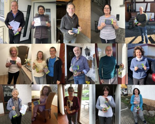 Trotz Corona haben im letzten Jahr einige Wanderer die 40 Punkte erreicht – Respekt!! Die damit verbundenen Abzeichen und Ehrungen können in diesem Jahr nicht wie gewohnt bei der Mitgliederversammlung verliehen werden. Deshalb wurden diese von Wanderwart Bruno Müller persönlich zugestellt und an der Haustüre übergeben. Zusammen mit einer Glückwunschkarte vom gesamten Vorstand mit der aufgedruckten Punktezahl, wurde das Abzeichen, bzw. das flüssige Gold übergeben. Die Überraschung und Freude war groß, da kaum einer damit gerechnet hatte. Insgesamt wurden 17 Ehrungen überreicht.