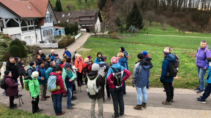 Zum Start ins neue Wanderjahr trafen sich – trotz schlechter Wetterprose – am 14.Januar 44 begeisterte Wanderer. Vor dem Start an der Kirche in Obersasbach wurden alle SwV Mitglieder und Gäste aufs herzlichste Willkommen geheißen und viele gute Wünsche für 2023 untereinander ausgetauscht.