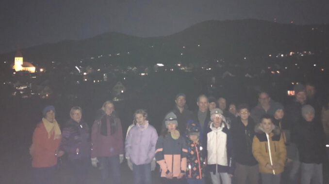 Schwarzwaldvereines Sasbach / Obersasbach statt. Angesichts des heftigen Regenwetters der vergangenen Tage bangte man um die Durchführbarkeit der geplanten Wanderung. Die Befürchtungen wurden zum Glück nicht bestätigt. Nach einem sonnenreichen Tag lugte pünktlich um 18 Uhr am Treffpunkt bei der Kirche der Mond über dem Berg hervor.