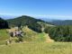 Nun ging es am Schlosshotel vorbei und ein kurzes Stück dem Querweg Lahr-Rottweil in Richtung Huberfelsen. Auf dem Uhufelsenweg stieg man vom Schlossberg über die Schlossschanze auf den Ziegelkopf hinauf. Mit Ausblick ins Gutachtal. Zu Beginn der spanischen Erbfolgekrieges (1701-1714) ließ Markgraf Ludwig Wilhelm I. von Baden – der Türkenlouis – eine Verteidigungslinie gegen einfallende französische Truppen errichten. Helmut erklärte paar Details darüber und weiter gings’s zum Aussichtspunkt am Uhufelsen mit einem Kreuz. Durch dichte Wälder wanderten die Mitglieder schließlich an die Offenbachereckle-Hütte (737 m) um dort Rast zu machen. Gut gestärkt marschierten die Mitglieder zum aussichtsreichen Huberfelsen. Ein kleiner Felsturm aus Granit, der sich auf der vierten Etappe des ZweiTälerSteig befindet. Er wird auch gerne U-Boot bezeichnet. Nun ging es wieder ein Stück zurück und auf felsigem Weg stets bergauf zum Karlstein. Der Karlstein ist eine Felsformation aus Granitblöcken im Ortsteil Niederwasser, der knapp 1000 m ü.M. liegt. Er bietet eine besondere Aussicht nach Osten, Norden und Süden. Bis 1805 markierte der Karlstein ein Vierländereck, an dem die Länder Baden und Württemberg sowie die Fürstenbergischen und Vorderösterreicherischen Besitzungen aneinander trafen. Der Fels hieß früher Hauenstein. Nach einem kleinen Umtrunk und einem Gruppenbild ging es nun wieder abwärts zum HOTEL SCHÖNE AUSSICHT. Dort genoss man eine wunderbare Kombination aus Entspannung, Genuss und Aussicht. Auf dem Fünfgeld-Pfad ging es nun auf schönen Waldpfaden stetig bergab, bestimmt hatte der ein oder andere Teilnehmer am nächsten Tag Musekelkater in den Oberschenkeln. Die Wandergruppe konnte noch eine Blick auf die Freilichtbühne werfen und anschließend die herrliche Rundwanderung von 16 km und 700 Hm in einem Lokal in Hornberg ausklingen lassen.