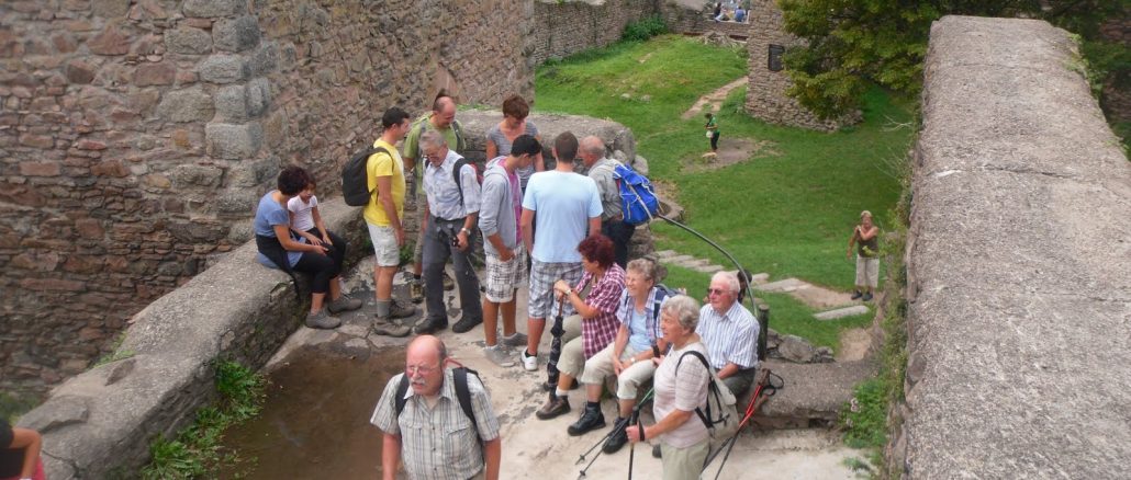 Ausgangspunkt der späteren Wanderung bei schwül-warmem Wetter war die Stadt Oberkirch, von dort aus führte Schriftführerin Brigitte Morbach eine der beiden Wandergruppen zunächst ins dortige Heimat- und Grimmelshausenmuseum. Anschaulich wurde den Gästen die Geschichte der Stadt sowie der Burg verdeutlicht, ehe sich die Wanderung durch den Stadtteil Wolfhag nach Niederlehen zum Weingut Börsig anschloss.
