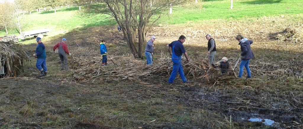 Das Thema Natur- und Landschaftsschutz wird beim Schwarzwaldverein Sasbach nach wie vor ernst genommen: in diesen Tagen fanden die Reinigungsarbeiten im Biotop Keltenbächel statt, wobei es in erster Linie galt, die zuvor abgemähten Gräser zusammenzutragen und mit maschineller Unterstützung abzufahren. Mit zur Arbeitsgruppe gehörte auch ein Team von Lehrkräften der Heimschule Lender, zu deren Besitz das Gelände gehört. Eine große Hilfe war dabei in dem richtig sumpfigen Gelände der Einsatz eines Frontladers, wobei man hinsehen musste, dass das schwere Gefährt nicht im schlammigen Untergrund unterging. Unser Bild zeigt einen Teil der bei den Biotoparbeiten tätigen Arbeitsgruppe, da nun das Terrain soweit bearbeitet hat, dass im Frühjahr der Grünbewuchs wieder von neuem beginnen kann.