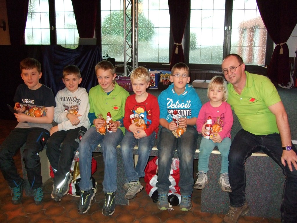 Ein Sextett von Jungwanderern konnte im Rahmen der vorweihnachtlichen Feier mit Ehrennadeln für viele Wanderpunkte geehrt werden. Das waren (v. li. Philipp Kunner, Nicolai Ketterer, Carsten Zink, Alessandro Ott, Jakob Kaltenbach und Hanna Kaltenbach, rechts der Vereinsvorsitzende Albert Bohnert).
