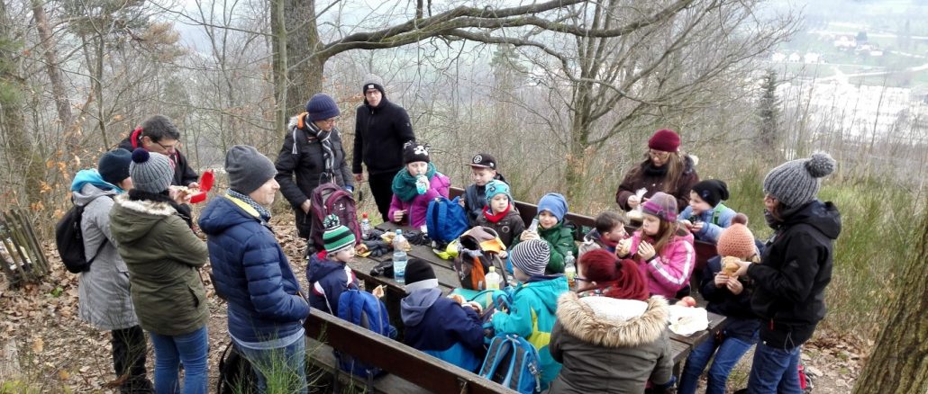 Die heutige Geocaching-Tour führte die Familiengruppe des Schwarzwaldvereins und mehrere Gastwanderer rund um den Oberacherner Hausberg, den Bienenbuckel. Dafür dass wir noch Winter haben war es ganz schön frisch, wehte doch ein recht kühler Wind.