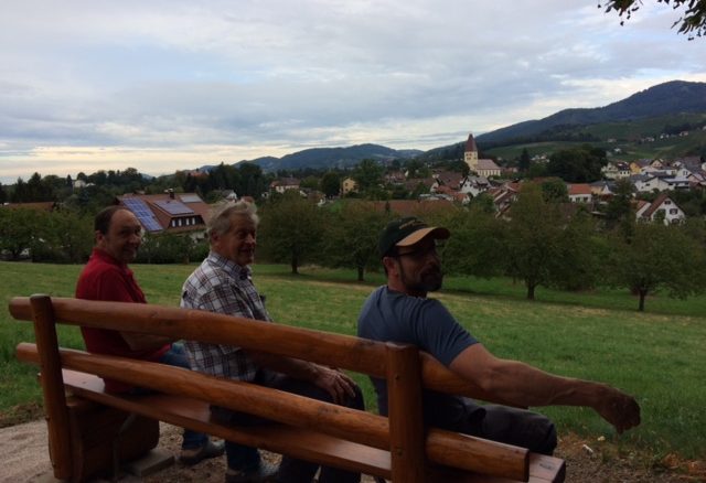 Am 16. September war es schließlich so weit: Die von Joseph Kurz gebaute Sitzbank wurde unter der Mithilfe von Werner Faißt, Charly Schnurr und Albert Bohnert bei einem kurzfristig terminierten Arbeitseinsatz am Samstag Vormittag aufgestellt.
