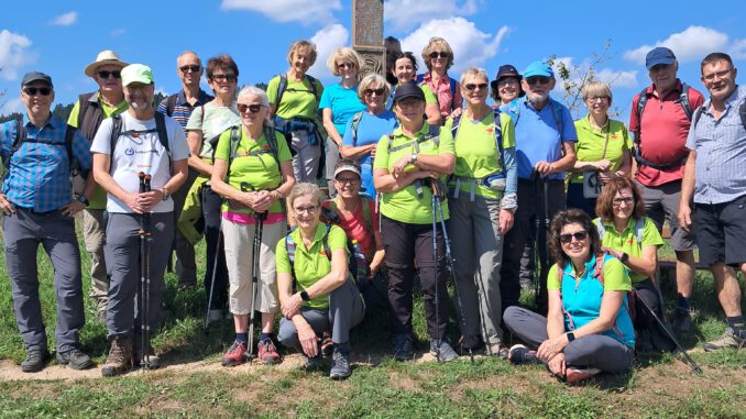 Am 24. August erwanderten 24 Frühaufsteher bei ca. 24 Grad die schönen Plätze im vorderen Renchtals. Treffpunkt war um 8.30 Uhr in Hesselbach. Bei der Begrüßung von den zwei Wanderführerinnen Angelika und Andrea wurden auch die Gäste aus Lauf und Unzhurst erwähnt. Nun ging es bei nassen Graswegen in Richtung Hotel-Restaurant Renchtalblick, hoch zu der Gebetsstätte MARIENFRIED. Angelika erzählte der Gruppe etwas über die Schönstatt-Kapelle, dem Pater Josef Kentenich und dem Seminar- und Bewegungshaus. Stetig bergauf und mit einem Vogelgezwitscher aus dem Zwitscherkästle im Nacken, hielt man bei einem tollen Aussichtsplatz an. Andrea berichtete von der Burg Fürsteneck, die im 12. Jahrhundert erbaut wurde und im Dreißigjährigen Krieg 1635 komplett zerstört wurde, nur noch paar Mauerteile sind zu erkennen. Noch zu erwähnen wäre, dass es 800 registrierte Hausbrennereien allein in Oberkirch gibt. Schattige Wege begleitete die SWV-Mitglieder zu einem schön angelegtem Versorgungshäusle vom Dilgerhof. Was es da alles gab… weiter durch schattige Nadelwälder zur MAIECKLE Hütte und zum Buseck-Bänkle. Ein Highlight war bestimmt der 20 m hohe Geigerskopfturm. Er steht auf dem Gebiet von Bottenau und trennt mit seinem Höhenzug das Hesselbachtals von den Ausläufern des Rheintals. Manch mutige Wanderer bestiegen den Turm und genossen die Aussicht. Nun marschierte man einen schmalen, wurzligen Weg hinunter und weiter zum PANORAMAHISLI. Neben gekühlten alkoholfreien Getränken gabt es auch Destillate vom Kapelleck-Hof und verschiedene Snacks. An die alkoholfreien Getränke gelangt man durch Kurbeln, an diese zur Kühlung im Boden gelagert werden. Der Platz lud den Verein zum Verweilen ein mit Blick auf Schloss Staufenberg und die Weinberge. Weiter ging es zum Gehege des Hofguts SILVA. Einem Schweinezuchtbetrieb mit extensiver Freilandhaltung von Tamworth- und Berkshireschweinen. Auszeichnung 2024 vom Naturpark Schwarzwald für artgerechte Tierhaltung. An dem höchsten Punkt der Wanderung, die BILDEICHE, wo am 1. Mai immer ein Waldfest stattfindet, gab es einen kleinen Umtrunk. Auf schönen Wegen wanderte die Gruppe bei angenehmen Temperaturen vorbei an der BERGLE-Hütte. Auch ein Gruppenbild wurde gemacht, bevor es vorbei an den Versorgungsboxen und den Obstwiesen am Oberkircher Brennersteig abwärts ging. Nach 16 km und 400 Hm saß man im Garten des Hesselbacher Hofes und genoss das leckere Mittagessen…