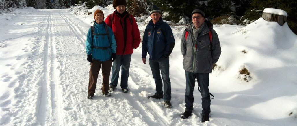 Am Sonntag 27.01.2013 führte Wanderführer Martin Großmann „Durch`s winterliche Naturschutzgebiet“ am Kaltenbronn. Bedingt durch die Wettervorhersage: „Es wird Eisregen geben“ fanden sich am Lindenplatz 5 wackere Wandersleute zur Abfahrt nach Kaltenbronn ein.