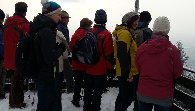 Der Weg führte uns dann bergab durch den überwiegend verschneiten Wald bis zu den Weinbergen und zur Kirche. Am Ziel angekommen bedankte sich Franz Kurz im Namen des SWV bei der Wanderführerin für die schöne Wanderung in einer nahen Gegend, die man doch nicht so häufig ansteuert.