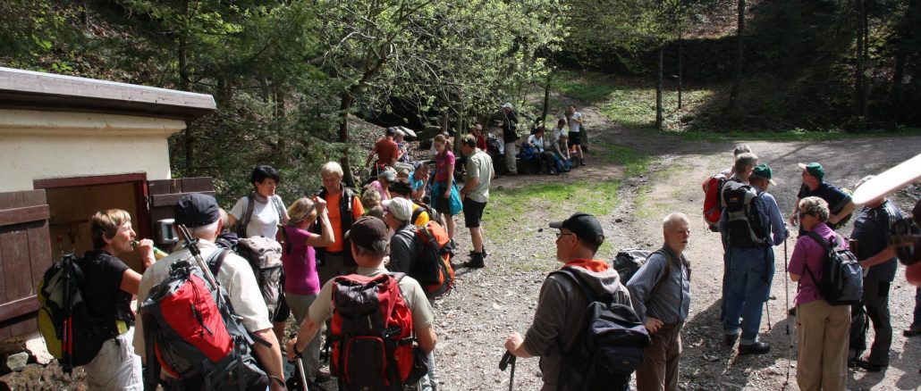 Traditionsgemäß durfte vor dem Start ein kleiner Wandertrunk nebst Gebäck nicht fehlen, dann aber wurden die Wanderschuhe geschnürt. Unterwegs stellte Wanderwart Helmut Hauser, der später die anspruchsvollere Wanderung über die Felsen anführte, die Besonderheiten der Region vor, wobei er unter anderem auch erwähnte, daß sich der Gemeindename Ottenhöfen wohl vom „Otto-Hof“, einem der größeren landwirtschaftlichen Anwesen, ableiten läßt. Zudem gab Hauser auch einen kurzen Einblick in die Geschichte der Burg Bosenstein und nannte einige der Mühlen, die überwiegend am sehenswerten „Mühlenweg“ liegen und das Landschaftsbild wesentlich mitprägen. Helmut Hauser ging der Wanderung, die durch den Ottenhöfener Ortskern hinauf zur Burg Bosenstein und zu den Wasserfällen des Edelfrauengrabes führte, voran. Durch das Gottschlägtal erfolgte der Einstieg zum Karlsruher Grat, wo sich die Wege beider Wandergruppen kreuzten. Nicht alle Teilnehmer trauten sich die Tour über die Felsen und Bergrücken, die den Grat hoch über dem Gottschlägtal bilden, zu, wer sich jedoch Helmut Hauser angeschlossen hatte, wurde für die Mühen hervorragend belohnt: herrliche Weitsichen in alle Himmelsrichtungen verdeutlichten, daß man sich hier in einer der schönsten Gebiete des nördlichen Schwarzwaldes überhaupt befand.