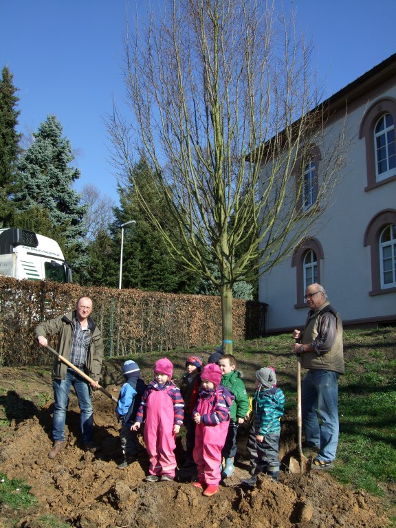 Einen Vorstandsbeschluss, sich aus Anlaß des 150jährigen Gründungsjubiläums des Freiburger Hauptvereins durch eine besondere Aktion zu beteiligen, setzte der Schwarzwaldverein Sasbach am Donnerstag, den 20. Februar in die Tat um: im Außenbereich des Kindergartens Obersasbach wurde ein Baum gepflanzt.