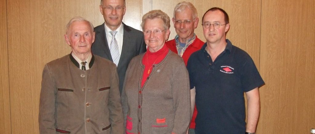 Foto: Hochkarätige Ehrung durch Bürgermeister Wolfgang Reinholz (2.v.li.)für die langjährige Vorsitzende Gisela Höß (Mitte): sie wurde für ihr ehrenamtlichen Engagements im Schwarzwaldverein und im Kirchenchor Obersasbach mit der Ehrennadel des Landes Baden-Württemberg und der Urkunde des Ministerpräsidenten Kretschmann geehrt und ausgezeichnet, zudem wurde sie vom SWV-Vorsitzenden Albert Bohnert (re.) zum Ehrenmitglied und zur Ehrenvorsitzenden ernannt. Ehemann Franz Höß gehört dem Schwarzwaldverein seit 25 Jahren an. Zu den Gratulanten dieser Ehrungen zählte auch der Bezirksvorsitzende Klaus Mohr (4.v.li.).