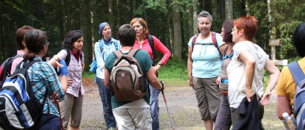Um 7.30 Uhr trafen sich 20 mehr oder weniger muntere, aber auf jeden Fall wanderfreudige Damen mit Frauen-Wander-Verführer Helmut Hauser am Lenderparkplatz. Nachdem die Autos gefüllt und die vorbildlichen Anfahrtspläne verteilt waren, ging die Fahrt los. Leider war die vorbildliche Wegbeschreibung nicht tagesaktuell – denn die Durchfahrt durch St. Peter war komplett gesperrt. Auf mehr oder weniger langen Umwegen – die an die Mitfahrerinnen spontan als kostenlose Sightseeing Touren verkauft wurden – und mit Hilfe von Navis, Straßenkarten und Beifahrerinnen fanden irgendwann alle den Weg nach Waldau. Was war Helmut erleichtert als er alle seine 24 Schäfchen beisammen hatte! (Falls jemand aufmerksam gelesen hat: Vier Frauen kamen auf direktem Weg nach Waldau) Nach diesem Abenteuer mussten sich natürlich zuerst einmal alle mit Kaffee, heißer Schokolade oder gar Weinschorle stärken. Danach konnte uns Helmut dann aber endlich dazu überreden, die Wanderschuhe anzuziehen…